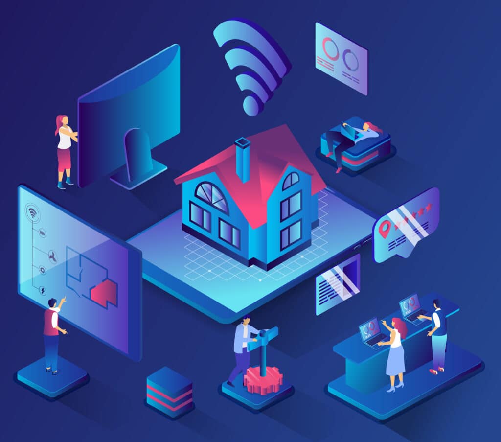 Através da assistencia virtual por comando de voz ou diretamente em seu smartphone é possivel acender luz, abri portões de garagem, acionar equipamentos, abertura de cortinas , janelas, ou até mesmo realizar consultas na web.